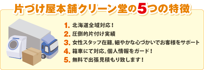 合同会社片づけ屋本舗クリーン堂では、不用品や粗大ゴミ、引っ越しゴミの片づけ、ゴミ屋敷の片付け、各種清掃、遺品整理、解体、買取など、不用品片づけやゴミに関わる様々なサービスを提供しています。気になる料金は全て事前に正確に見積りをした後お客様にお伝えして、ご納得いただけた上で作業を開始させていただきますので、ご安心ください。